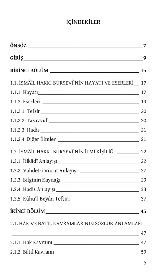 koyduğumuz bu çalışmanın İsmâil Hakkı Bursevî’nin daha